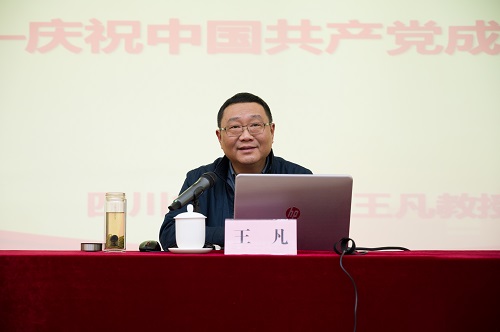 王凡以《从百年大党迈向百年强党——庆祝中国共产党成立100周年》为题作了专题辅导报告。他带领大家回顾了一百多年前中国积贫积弱的历史状况,深刻解读了中国共产党成立的背景,并从“一二三四”四个方面,对中国共产党取得的辉煌成就作了详细解读:取得了一个最根本成就——开创、坚持和发展了中国特色社会主义;领导了两场伟大革命——党领导人民进行了伟大社会革命和领导全党进行了伟大自我革命;实现了三次伟大飞跃——党领导人民实现了中华民族从站起来、富起来到强起来的伟大飞跃;完成和推进了四件大事——救国、兴国、富国、强国。