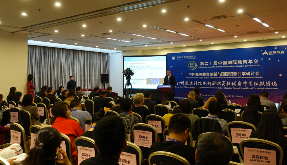 【本网讯】10月17日,学校校长余敏明应邀参加了在北京国家会议中心举行的第二十届中国国际教育年会,并在中外高等教育创新与国际资源共享研讨会上作题为“应用型人才培养的创新与实践”主旨发言。