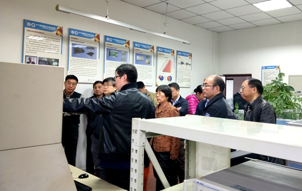 魏彩英一行在学校科技处处长朱明的陪同下,参观了学校大气探测重点开放实验室,认真听取了电子工程学院(大气探测学院)关于近年来所开展的科研情况介绍,并实地考察了我校风云四号静止气象卫星用户利用站的选址。