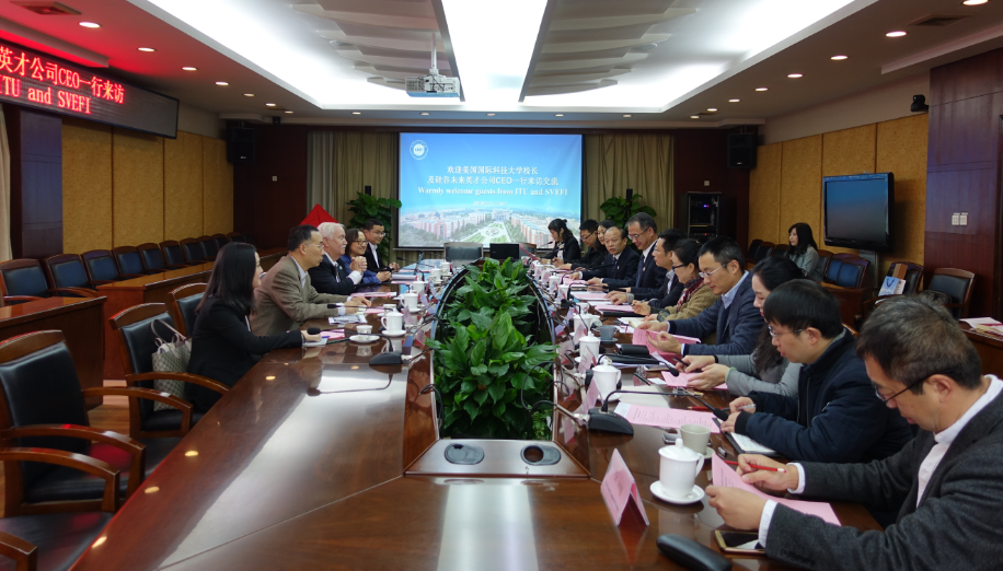 【本网讯】11月14日,美国国际科技大学(International Technology University)校长O’Brein、电子与计算机工程系主任May Huang、硅谷未来英才公司CEO钟南一行来校交流访问。学校校长余敏明,党委副书记马洪江、副校长何建新,相关职能部门和学院负责人参加了合作交流会议。会议由何建新主持。