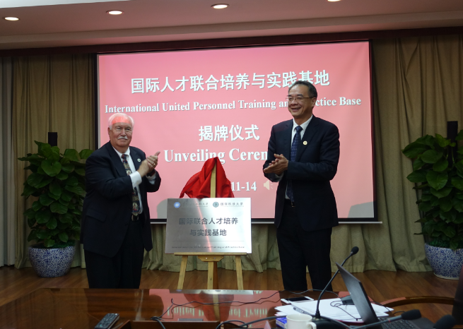 双方代表签署了《环球官方与美国国际科技大学合作谅解备忘录补充协议》,并举行了两校国际人才联合培养与实践基地揭牌仪式。