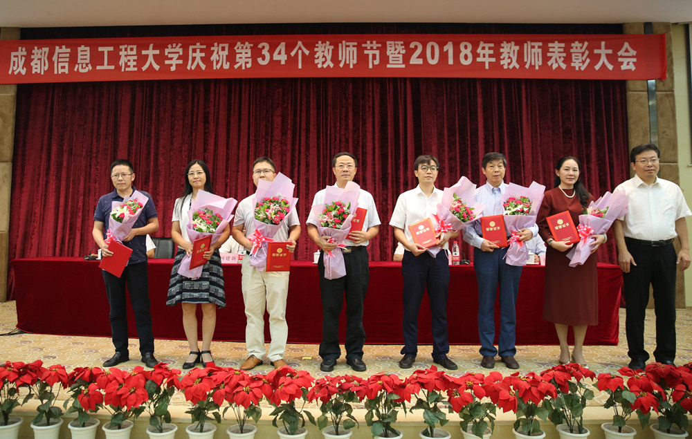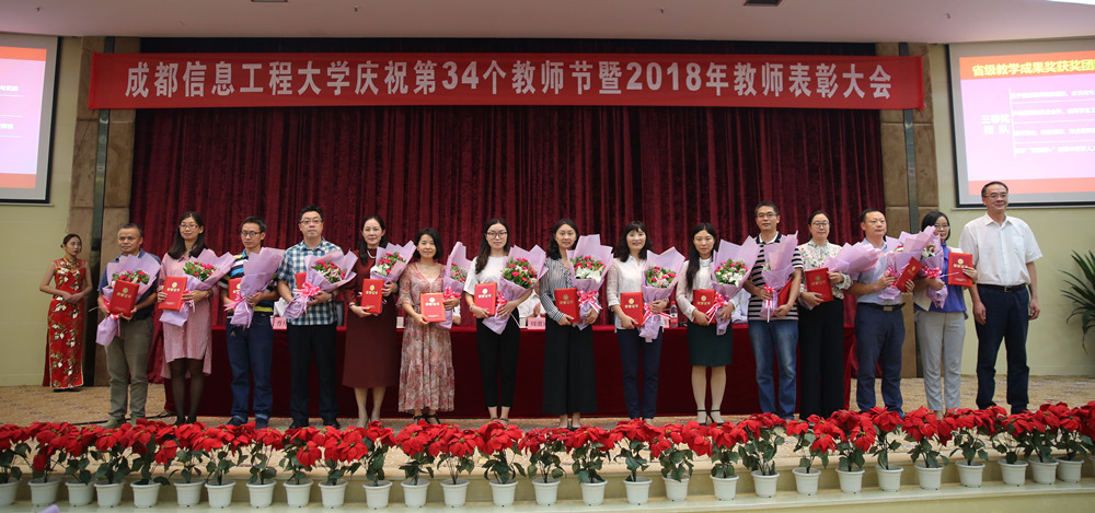 余敏明宣读了表彰文件:李国平获得“全国气象教学名师”荣誉称号、黄萍获得“四川省优秀教师”荣誉称号、王式功等4名教师入选“四川省学术和技术带头人”、吴震等5名教师入选“四川省有突出贡献的优秀专家”、李贺等3名教师入选四川省人才引进计划、14个教学团队获得省级教学成果获奖、王永前等20名教师入选“四川省学术和技术带头人后备人选”、陈科艺等10名教师获得第五届“青年教师教学奖”、胡茶根等18名教师分获学校第九届青年教师教学竞赛一、二、三等奖。
