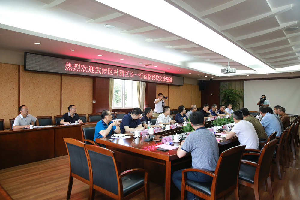 【本网讯】7月4日下午,武侯区委副书记、区长林丽,区政法委书记陈智一行来校进行调研座谈。学校校长余敏明,党委副书记马洪江,副校长舒红平及相关职能部门负责人参加了座谈。座谈会由马洪江主持。