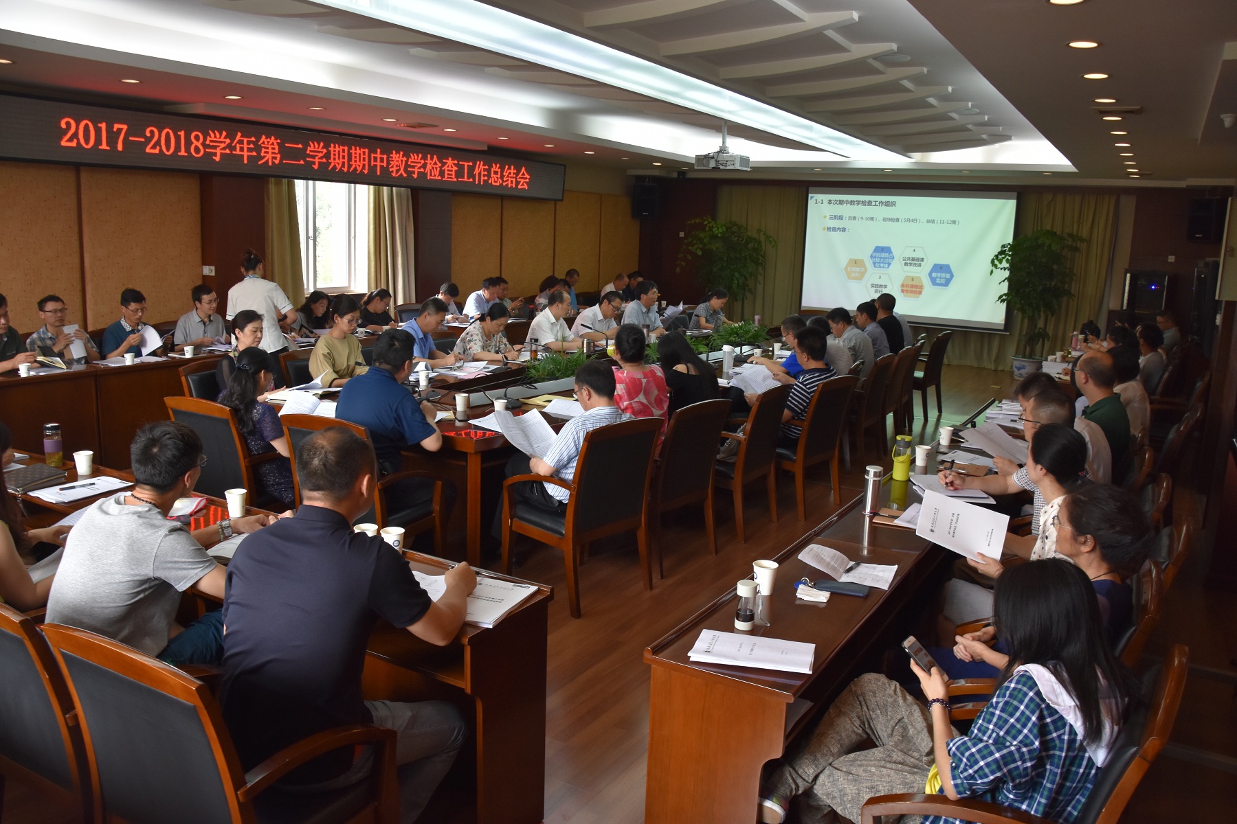 何建新做总结讲话。他强调,各单位领导要重视本科教学工作,要不断研究、不断发现问题并进行改进;要加强提高教师的责任意识和对教学、对学生的倾注力;要加强对毕业生论文答辩和毕业前的管理,做好毕业授位相关工作,增强毕业学生对学校的认同感;要做好后半学期的专业评估、18版人才培养方案修订和教改申报这几项重要工作。根据国家近期发布的人才培养机制改革、专业类教学质量国家标准等宏观政策,他要求各单位认真研究、把握政策、加快落实,不断提升学校人才培养质量。