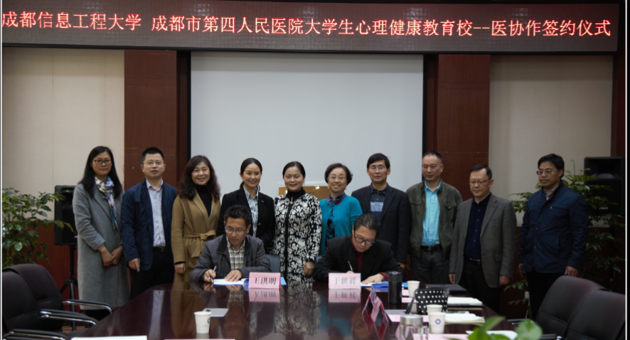 【本网讯】3月21日下午,学校与成都市第四人民医院大学生心理健康教育校医联系机制签约仪式在航空港校区行政楼第六会议室成功举行。成都市第四人民医院副院长王洪明、临床心理科主任袁茵,学校副校长于世祥,学工作部、教务处、文化艺术学院、电子工程学院、控制工程学院、外国语学院相关人员参加了签约仪式。签约仪式由学生工作部部长戴丽红主持。