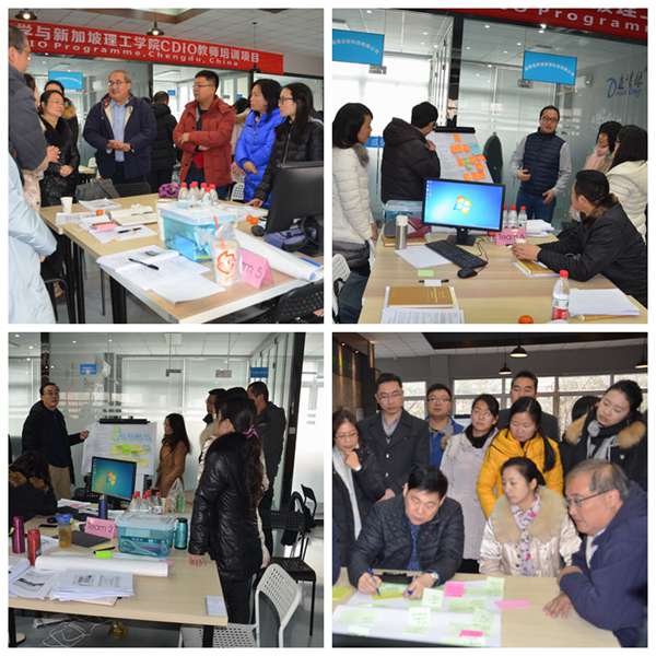在为期5天的培训中,新加坡理工学院的4位教师围绕CDIO全套教学理念、方法、技巧和实训展开教学,培训内容涵盖STEEP趋势分析团队角色的重要性、对应关联CDIO技能组与学生总体学习和校园生活经历等。培训中,外方别开生面地安排国内教师尝试设计以学习者为中心的访谈,并开展了对我校20余名低年级本科生的实境访谈和回顾访谈,挖掘学生学习需求、探寻学习者角色发展。
