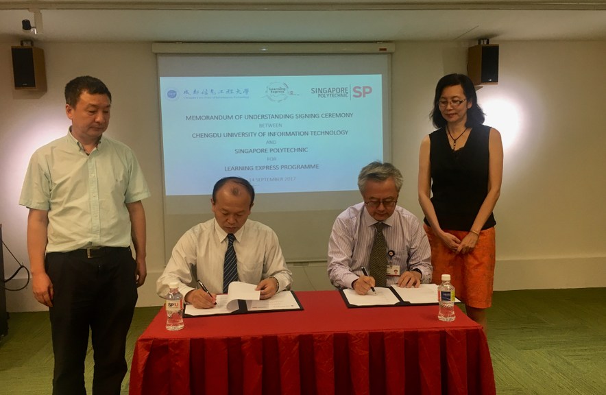 论坛期间,何建新一行受到新加坡理工学院副校长HEE JOH LIANG的热烈欢迎,双方针对两校长期以来共同探讨的CDIO教师培训、学生创新工程实践两个项目的开展交换了意见,并签署《环球官方与新加坡理工学院合作谅解备忘录-创新工程实践项目》。目前计划尽快启动该项目,选派相关教师赴新加坡理工学院进行培训,预计明年3月,新加坡理工学院的师生代表团将与我校师生联合开展创新工程实践项目。