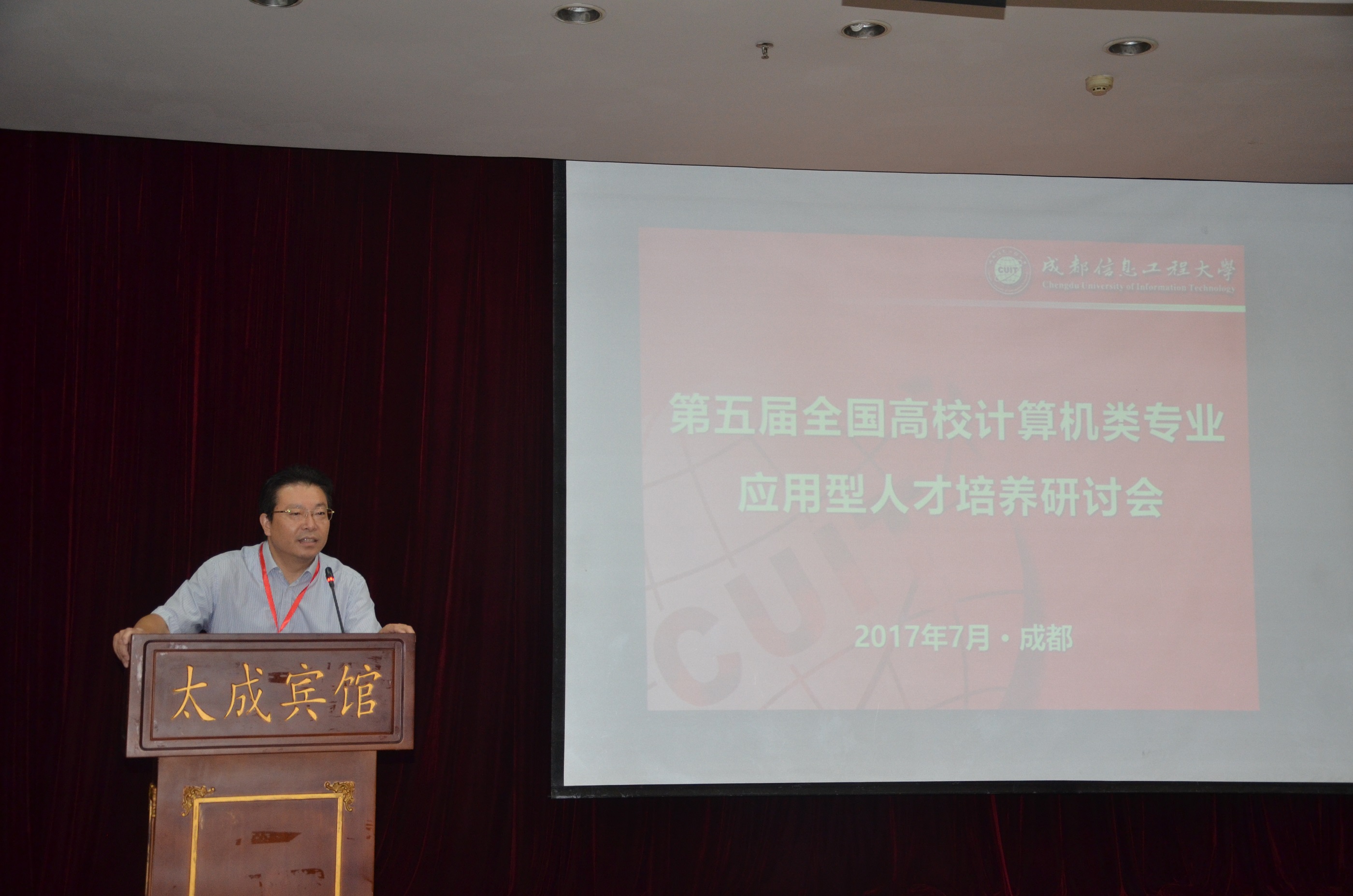 【本网讯】7月27日,由教育部高等学校计算机类专业教学指导委员会、全国高等学校计算机教育研究会与高等教育出版社主办,我校承办的“第五届全国高校计算机类专业应用型人才培养研讨会”在成都市太成宾馆隆重开幕。我校党委书记周激流教授,教育部高等学校计算机类专业教学指导委员会副主任蒋宗礼教授,国家级教学名师王万良教授,多位教指委委员以及来自全国50余所高校教师代表100余人参加了开幕式。开幕式由我校计算机学院魏维教授主持。