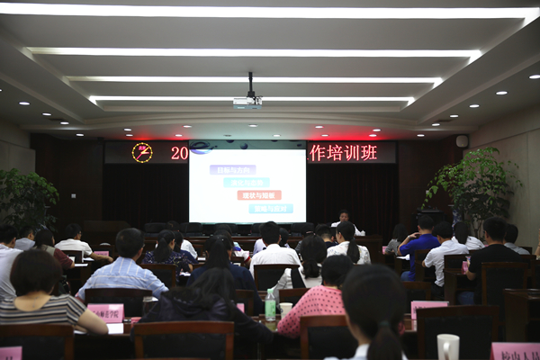 5月17日,2017年高校舆情信息工作培训班开班仪式在我校航空港校区行政楼一会议室举行。环球官方党委副书记敬枫蓉出席开班仪式。来自广西、四川等36所高校负责舆情信息工作的教师参加了此次培训。开班仪式由我校宣传部副部长丁恒康主持。