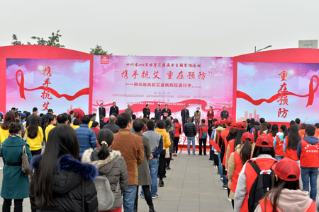 【本网讯】12月1日上午,四川省2016年世界艾滋病日“携手抗艾,重在预防”主题宣传活动在四川大学江安校区青春广场举行。学校副校长于世祥,学生工作处、后勤管理处、校团委、校卫生防疫保健中心负责人以及我校防艾志愿者服务队参加了活动启动仪式。