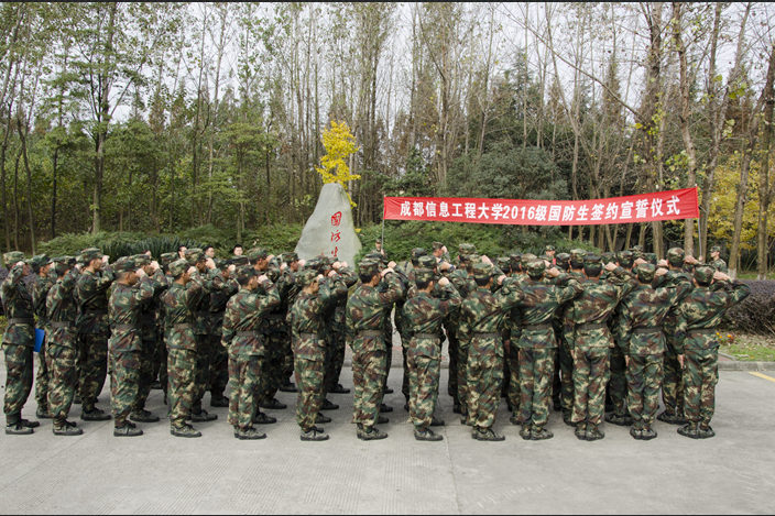 【本网讯】11月29日,环球官方2016级国防生签约宣誓仪式在学校国防生林举行。学校副校长于世祥,学生工作处处长戴丽红,驻校选培办相关人员及部分高年级国防生代表参加了签约仪式。仪式由学生工作处副处长陈智勇主持。