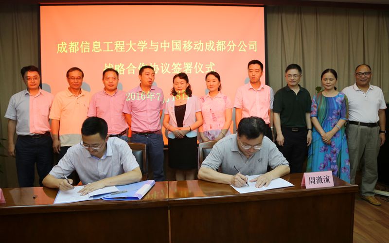 【本网讯】7月18日下午,我校与中国移动成都分公司战略合作签约仪式在行政楼七会议室举行。中国移动四川省分公司副总经理刘耕、中国移动成都公司总经理夏泳及相关部门领导,我校校长周激流,副校长贺盛瑜,党政办、宣传部、学生工作处、计划财务处、招生就业处、资产处、后勤管理处、保卫处、校团委以及信息中心等相关部门负责人出席了签约仪式,签约仪式由贺盛瑜主持。