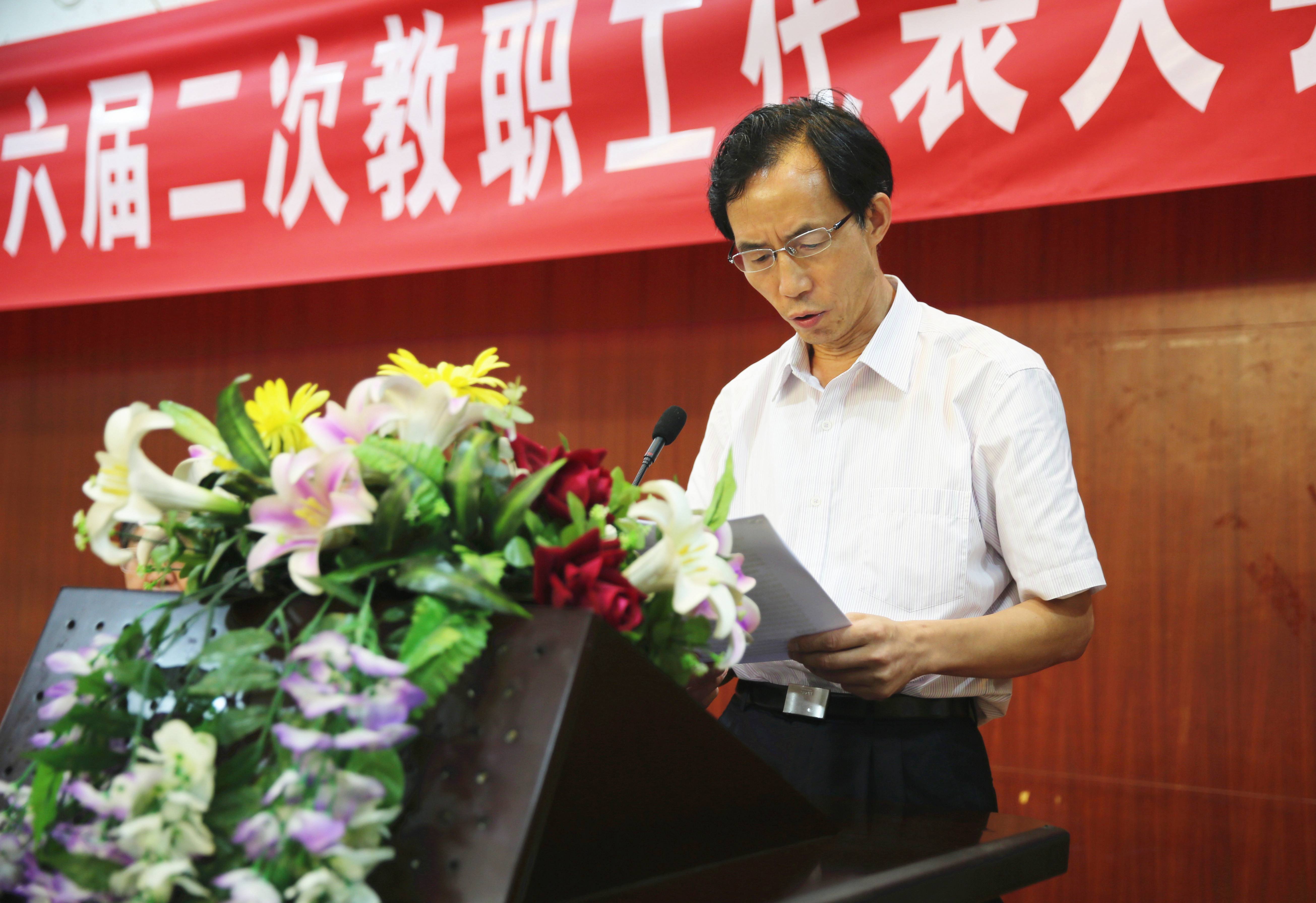 7月12日,学校第六届二次教职工代表大会圆满完成各项议程后,在航空港校区学术报告厅召开闭幕大会。学校第六届二次教代会全体代表参加了会议,闭幕会由第六届教代会执委会主席王天宝同志主持。