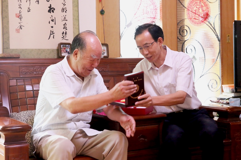 9月3日是中国人民抗日战争暨世界反法西斯战争胜利70周年纪念日。2日下午,校党委书记赖廷谦、副书记倪鸣代表学校走访慰问了我校张玉昆、王明山、王维、许荣耀、张占义等抗战老战士老同志及王健同志的家属,按照中央和省委统一安排,向他们发放“中国人民抗日战争胜利70周年”纪念章,并代表全校师生向抗战老战士们致以崇高敬意和诚挚问候。