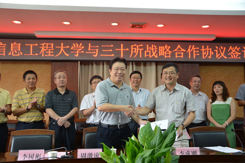 战略合作协议签订仪式由学校副校长向武主持,学校校长周激流、科技处处长董一平、科技处副处长朱明、教务处处长陈敏,信息安全工程学院院长李飞、党总支书记许鸿涛、副院长张仕斌和相关老师参加了仪式。中国网安公司参加协议签订仪式的领导有:中国网安董事长、三十所所长李成刚,中国网安副总经理、三十所副所长王文胜,中国网安总经理助理、经营发展部总经理李树彬,中国网安综合管理部总经理易涛,中国网安技术质量部总经理苏旸,中国网安人力资源部总经理刘恒,中国网安网络监测预警事业部副总经理刘刚等。