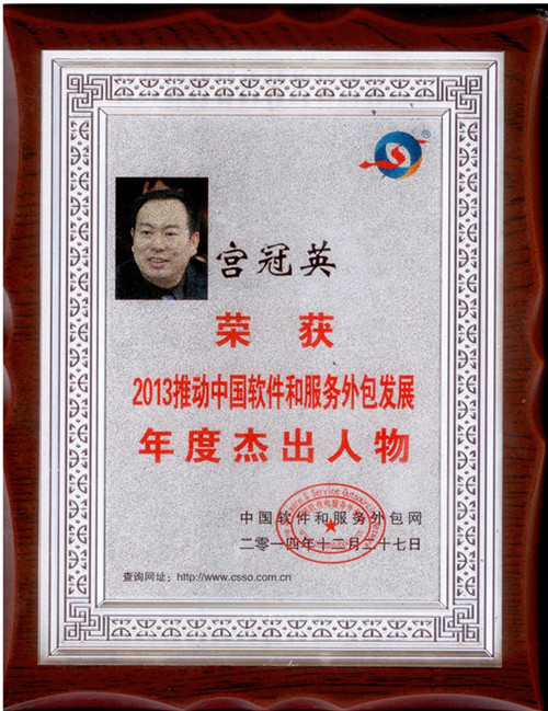 软件与服务外包学院宫冠英获2013推动中国软件与服务外包发展年度杰出人物