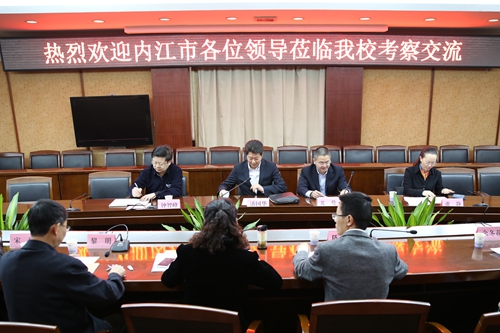 [本网讯]10月16日下午,中共内江市委常委、市总工会主席潘国华,内江市委副秘书长苏伦,市商务局局长张静、副局长钟智峰及相关人员莅临我院交流市校合作。我院副院长贺盛瑜,校地合作处处长陈麟、副处长宋波、物流学院院长黎明及相关人员参加了座谈交流会,会议由宋波主持。