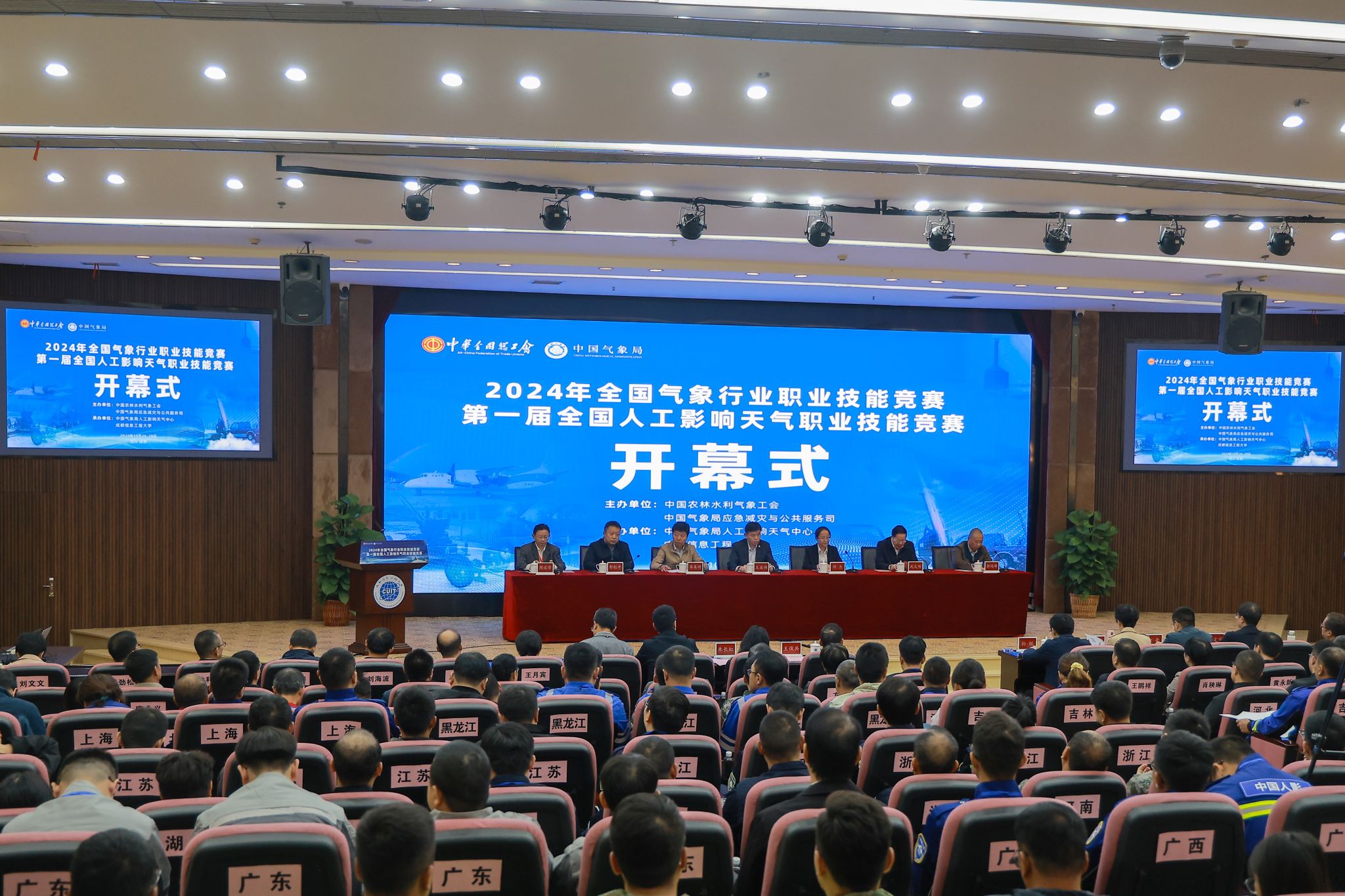 10月27日上午和10月28日上午,竞赛开幕式和闭幕式分别在学校国际会议厅举行。中国农林水利气象工会领导,中国气象局减灾司、机关党委(巡视办)领导,中国气象局人工影响天气中心领导,四川省总工会领导,学校党委书记沈火明,校长何建新、副校长舒红平出席会议。各省(区、市)气象局、新疆生产建设兵团农业农村局、北大荒农垦集团有限公司参赛团队领队、教练和选手,公证人员,竞赛组委会工作人员参加。