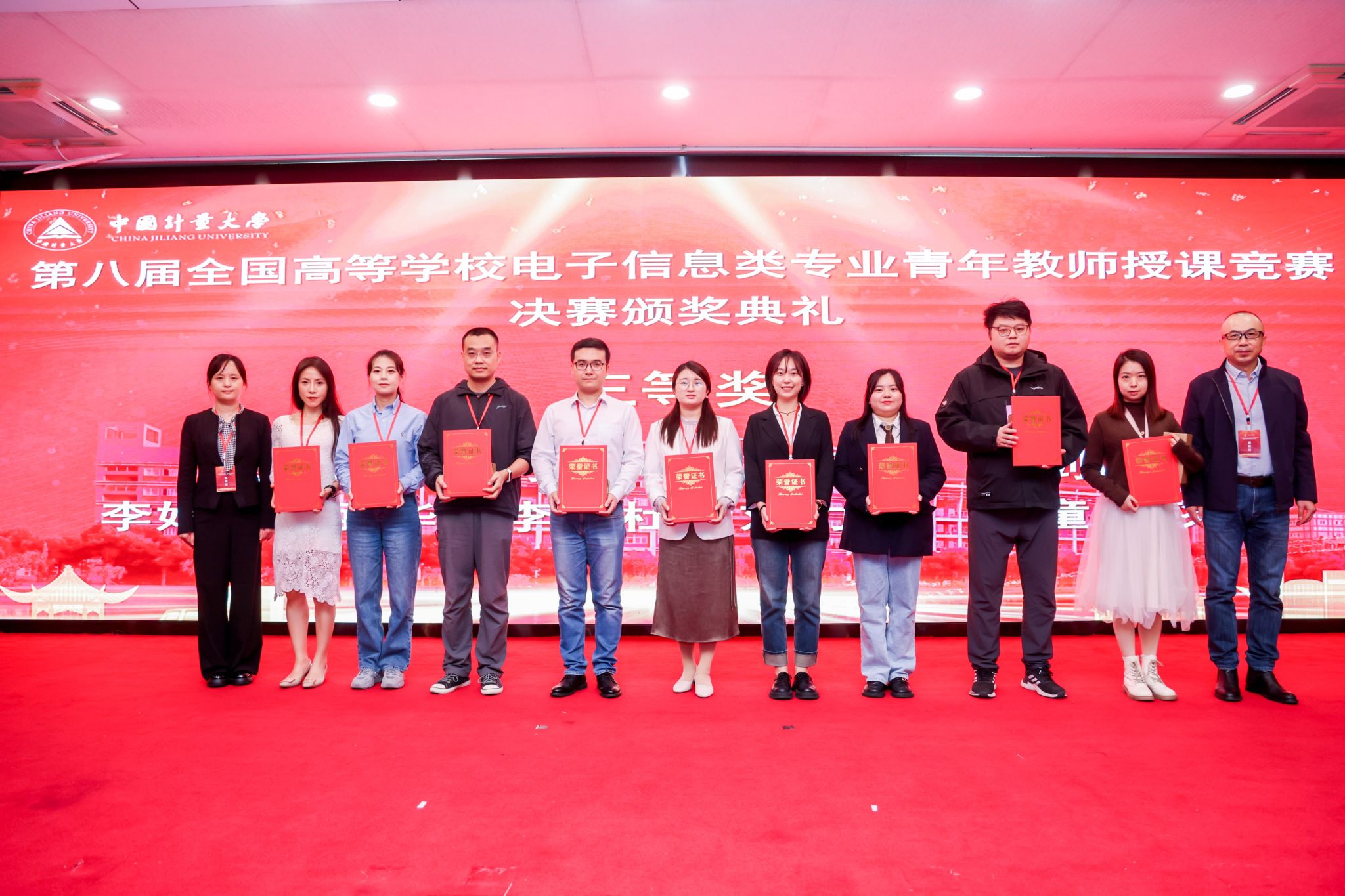 【本网讯】2024年10月19日至20日,由工业和信息化部教育与考试中心指导,教育部高等学校电子信息类专业教学指导委员会主办,中国计量大学承办的第八届全国高等学校电子信息类专业青年教师授课竞赛决赛在杭州举行,我校人事处(党委教师工作部)处长杜国宏带队参赛。经过激烈角逐,我校计算机学院陈美、自动化学院靳小钊、李艳霞等3名教师荣获全国二等奖,通信工程学院(微电子学院)李娟、自动化学院刘力源、杨强等3名教师荣获全国三等奖。