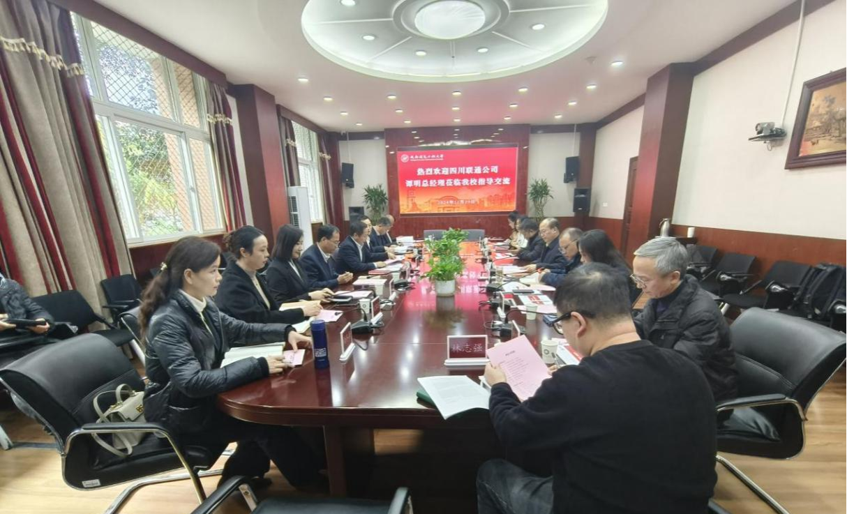 【本网讯】11月25日下午,中国联合网络通信有限公司四川省分公司(以下简称“四川联通”)总经理谭明、副总经理欧军一行来校交流座谈。学校校长何建新、副校长舒红平参加会议。会议由科技处副处长李秋敏主持。
