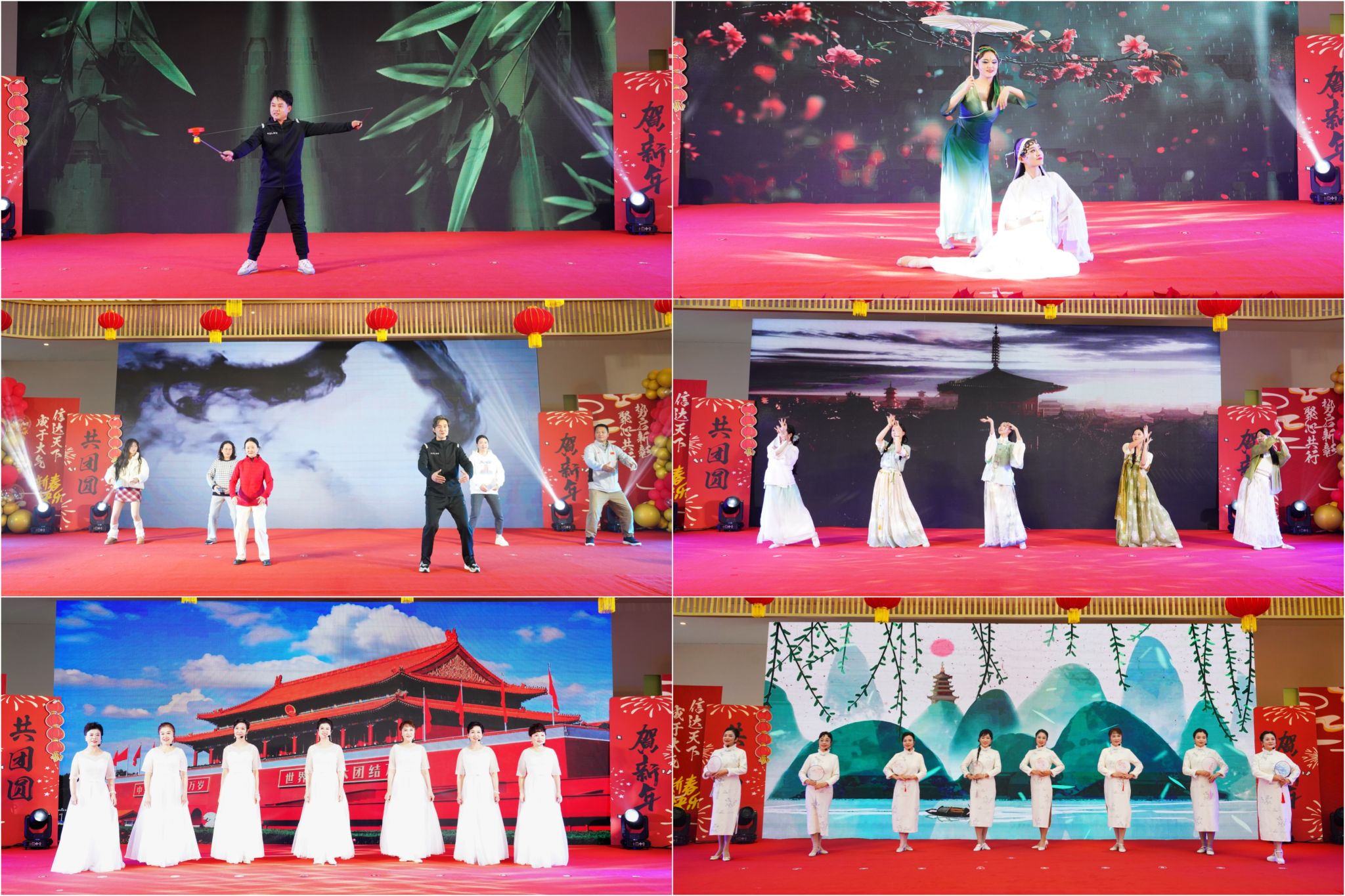 茶话迎新年,成信年味浓。合唱《祝你生日快乐》《声声慢》、配乐诗朗诵《党旗飘扬山河同光》、古典舞《清平乐》《雨后》、琴艺和书法展示《琴书合鸣》、传统体育表演《锦韵竹风》等精彩节目赢得了现场阵阵掌声。一轮轮抽奖更是将节日的喜庆气氛推向了高潮,现场洋溢着欢声笑语,气氛热烈而欢快。