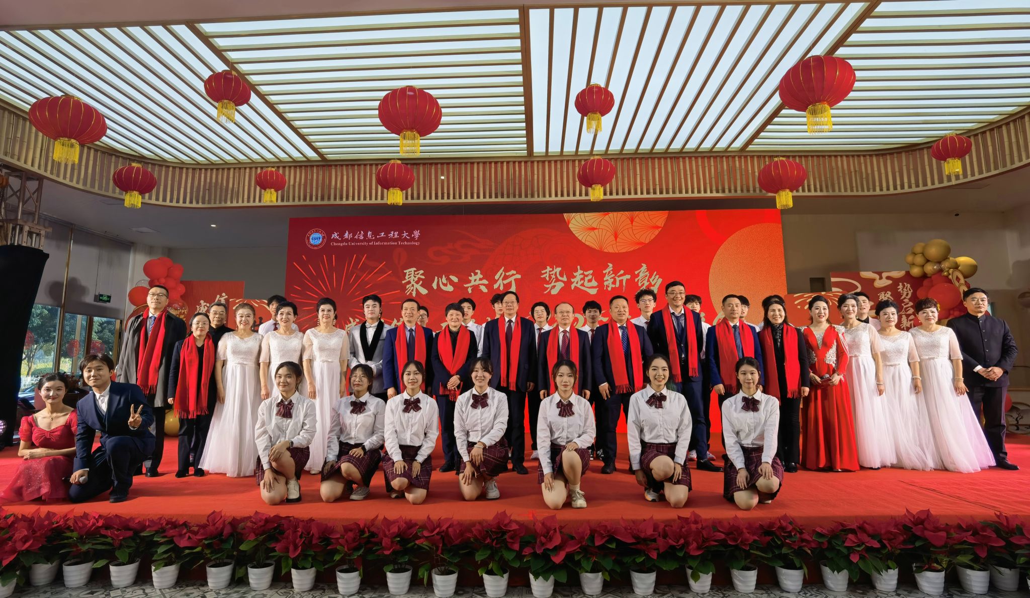 随后,在沈火明、何建新带领下,党委领导班子成员以饱满的热情和深情的语调,朗诵了这首特别为元旦定制的七言诗《2025元旦成信颂》。诗歌中不仅回顾了学校在过去一年中取得的成就,也表达了对未来一年学校发展的期待和信心。
