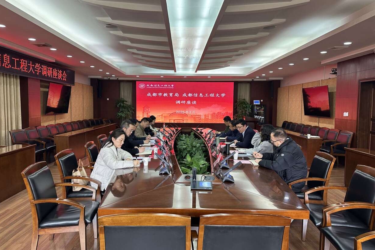 【本网讯】2月26日,中共成都市委教育工委委员、成都市人民政府总督学石斌,成都市考试院书记、院长魏祥明一行来我校调研座谈。我校党委常委、副校长吴锡,国内合作处、招生就业处、后勤基建处(后勤服务公司)负责人及招生就业处相关人员参加座谈。