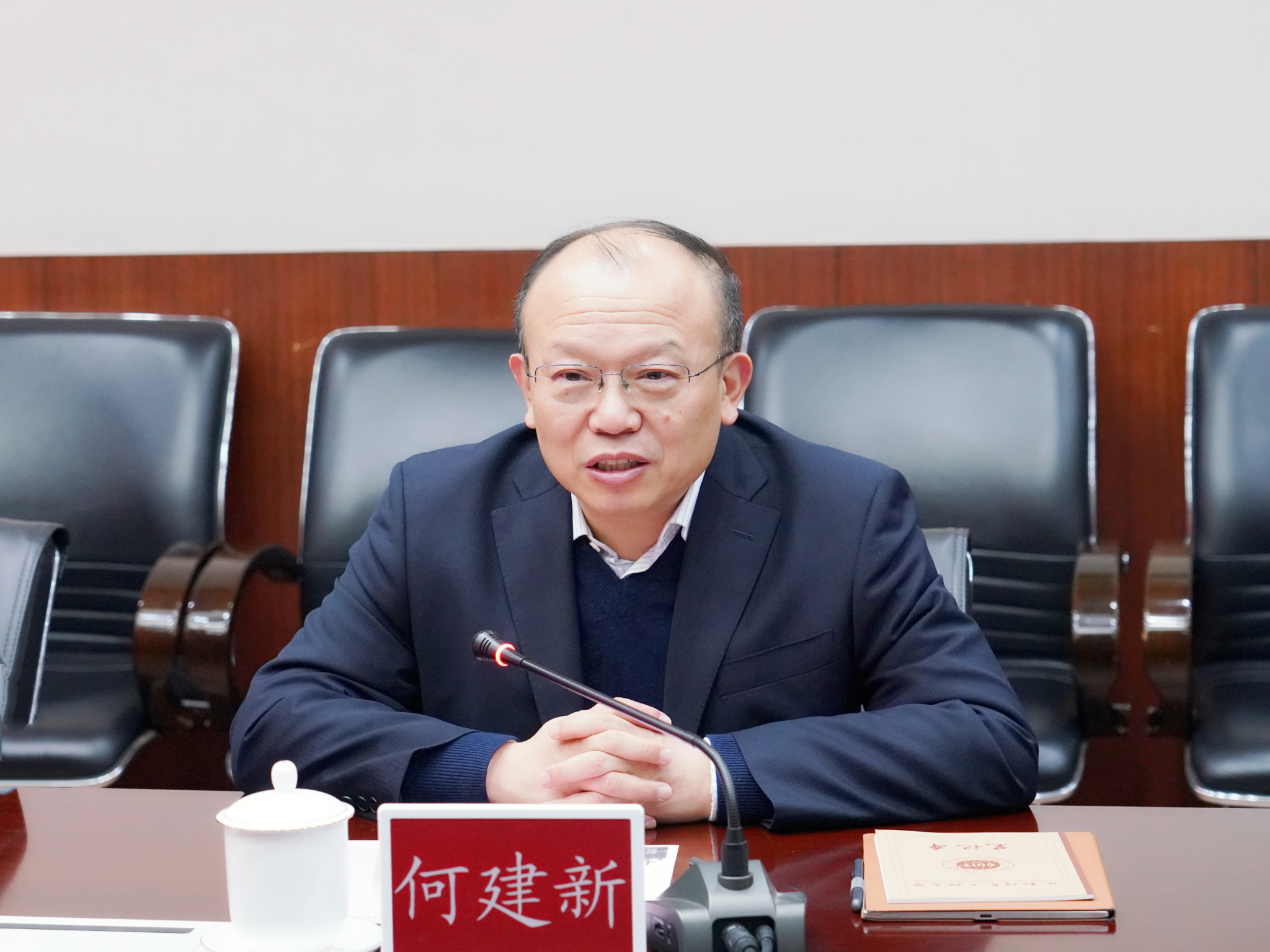 何建新对唐红昇一行表示热烈欢迎,他介绍了学校在人才培养、学科建设和科学研究等方面的基本情况。他指出,围绕气象业务,学校拥有专业的师资队伍与科研平台,希望双方整合资源优势,在人才培养、科学研究、业务培训等方面开展合作,推动双方共同发展。