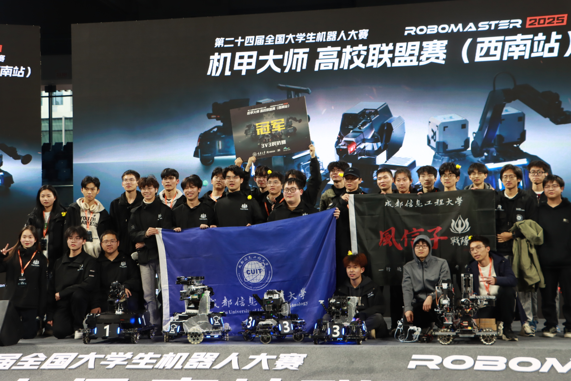 【本网讯】3月30日,在重庆大学虎溪校区体育馆内,由全国大学生机器人大赛组委会主办、重庆大学承办的RoboMaster2025机甲大师高校联盟赛(西南站)圆满收官。经过三天的激烈角逐,自动化学院风信子战队凭借卓越的技术、默契的配合和无畏的勇气,成功捧起冠军奖杯!