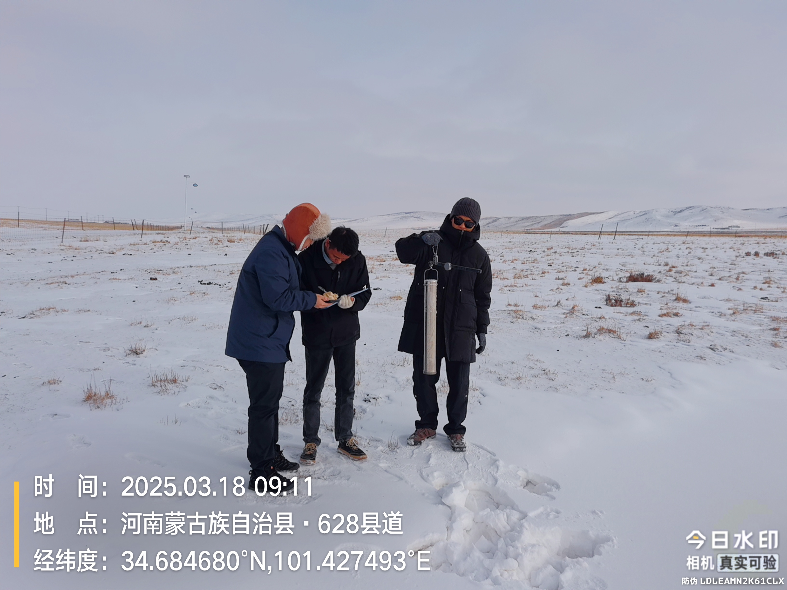 【本网讯】三月的高原,大雪纷飞。我校资源环境学院师生4人,3月16-22日期间历时7天跨越川、甘、青三省,横穿平均海拔4000米的三江源,开展了一次积雪特性与反射光谱的野外调查与观测试验工作。调查自成都出发,由红原、若尔盖进入三江源东缘的甘肃碌曲县,自青海省黄南州河南蒙古族自治县开始,自东向西经由黄河源阿尼玛卿雪山,翻越海拔4800米的巴彦喀拉山,进入长江源区通天河流域,由青海玉树地区沿澜沧江东部流域返蓉。本次野外调查行程逾4000公里,哪里有雪就向哪里出发,克服了道路的艰险,共获取积雪深度、密度、雪水当量样本95个,积雪反射高光谱数据20余条,较圆满地完成了预定考察任务,为三江源地区积雪遥感监测模型本地化优化及准确性提升、以及融雪过程与径流估算等科学研究提供了丰富的第一手数据。