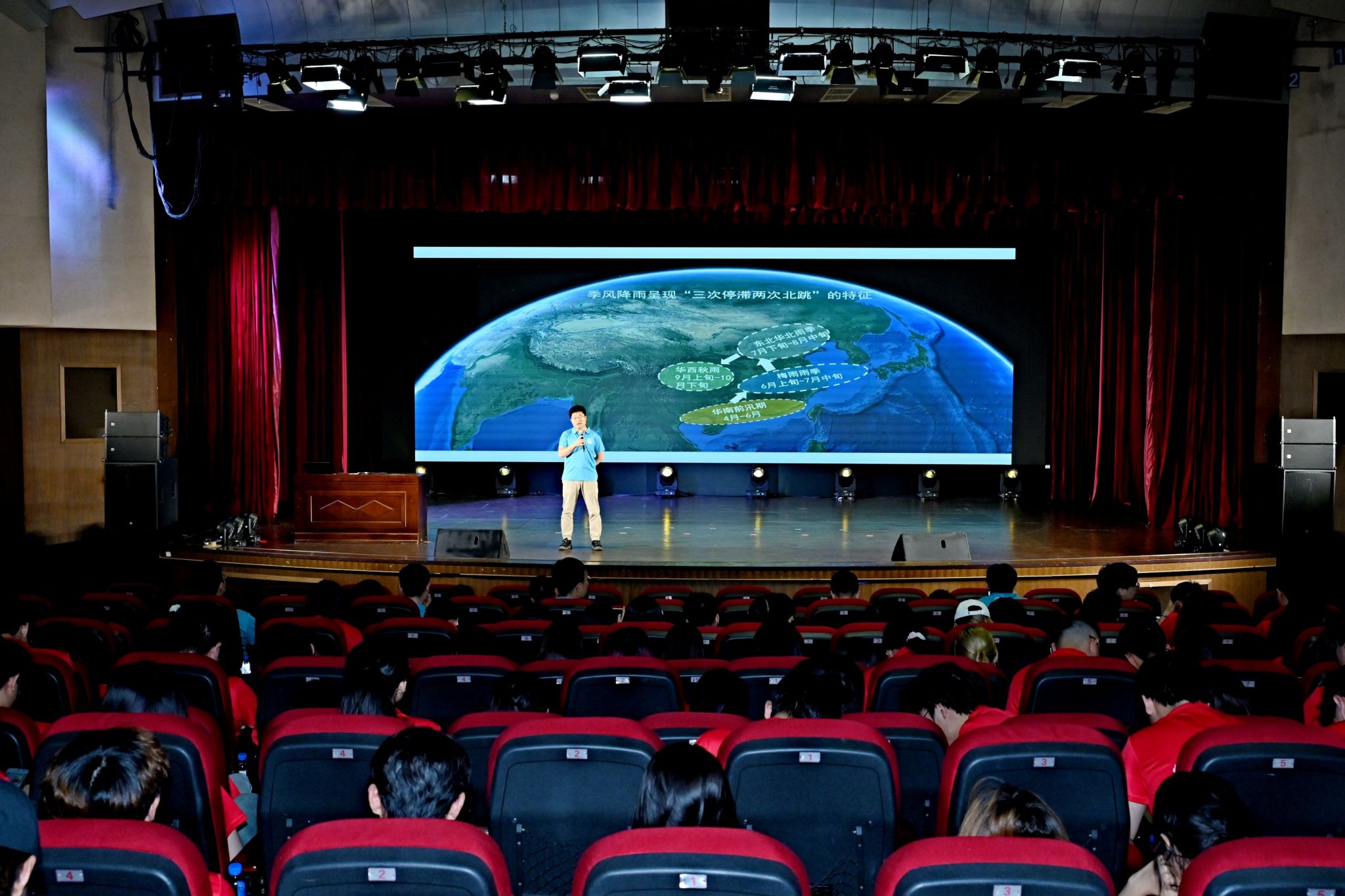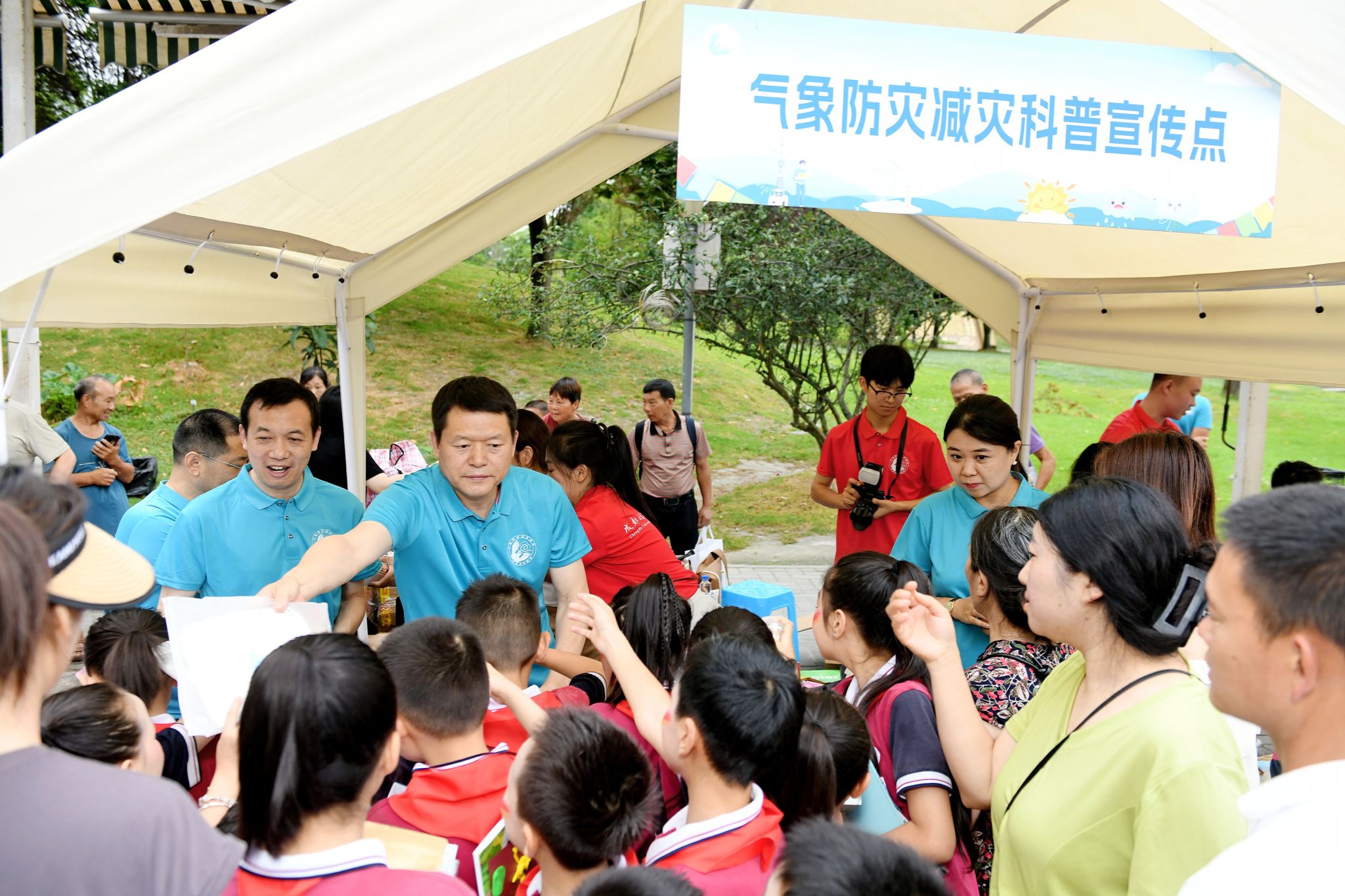 启动仪式后,在都江堰市同心广场,与会领导、嘉宾和大学生志愿者向当地群众作了气象防灾减灾科普宣传并发放相关学习资料。环球官方、四川省气象服务中心、都江堰市气象局主办的气象科普游园会,设有多个互动体验区,社区居民和小学生们通过趣味实验、VR体验等方式,近距离感受气象科学的魅力。在都江堰市工人文化宫,中国科学院大气物理研究所研究员、博士生导师魏科老师向大学生志愿者开展了《认识中国气候——季风与气候灾害》科普讲座。