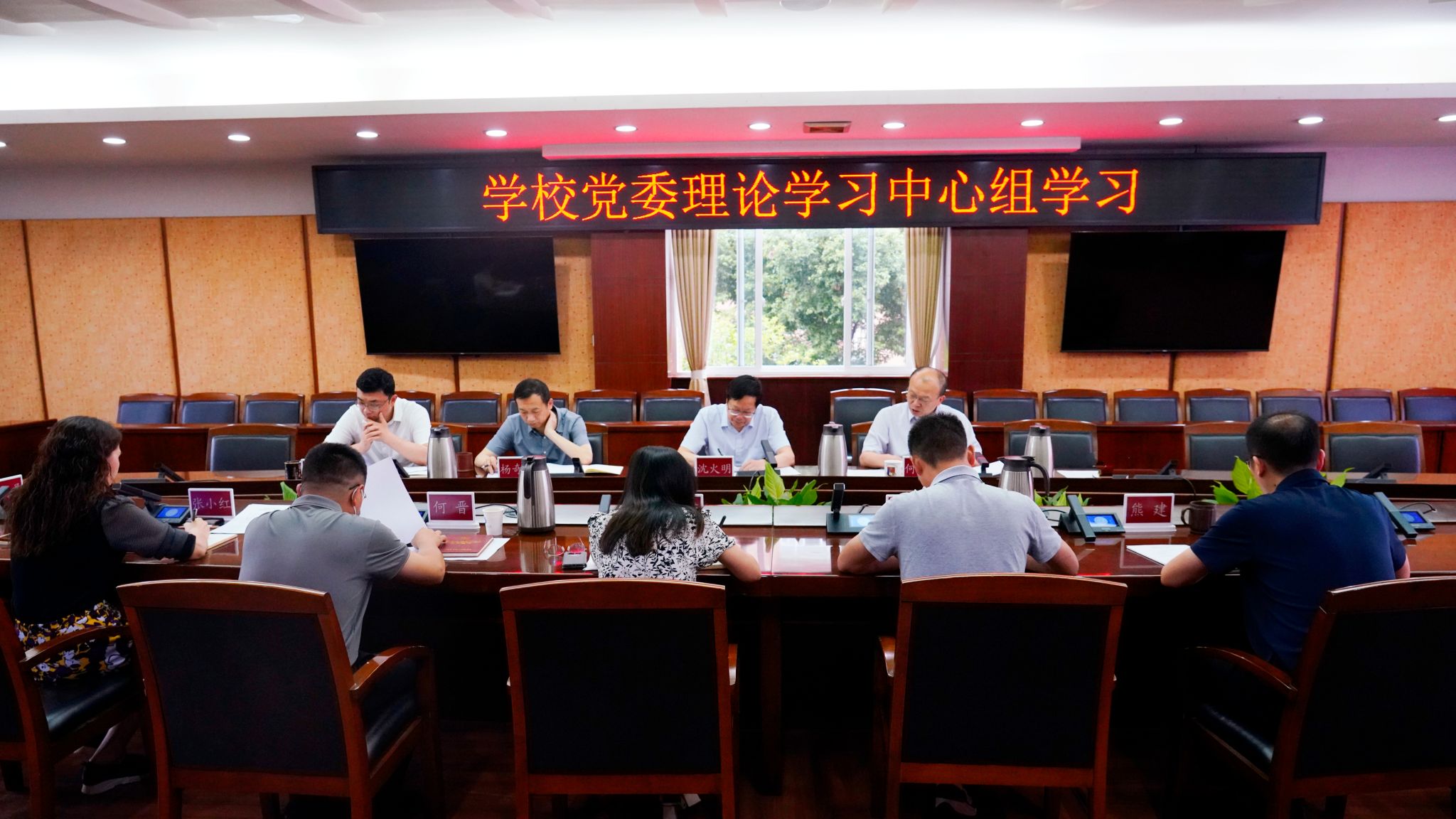 【本网讯】6月24日,学校在航空港校区第七会议室举行党委理论学习中心组学习会,传达学习省委十二届七次全会精神、公职人员违规吃喝认定标准以及意识形态工作相关要求。学校党委书记沈火明主持会议并谈认识体会。