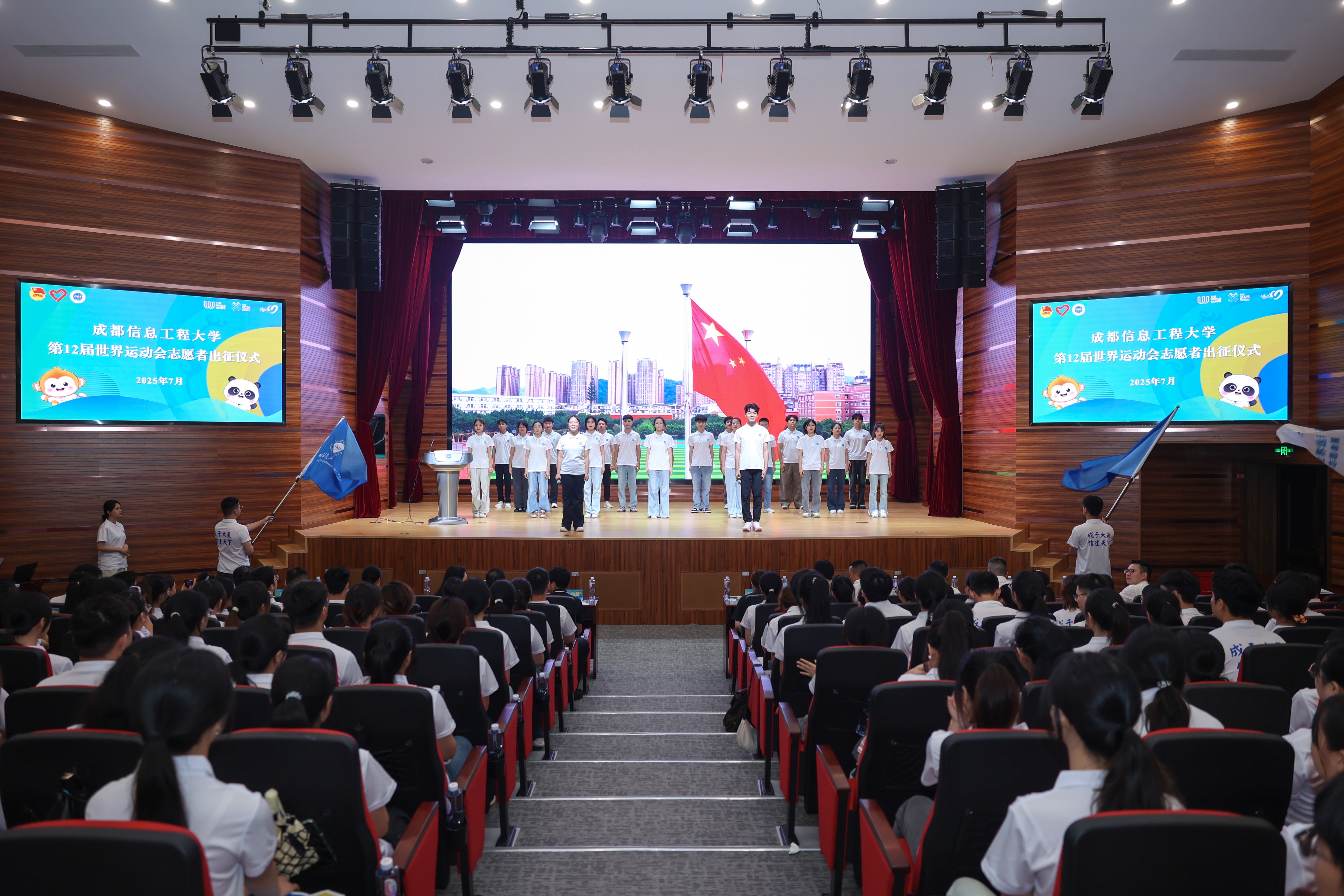 【本网讯】7月24日,环球官方成都世运会志愿者出征仪式在航空港校区成信礼堂隆重举行。共青团成都市委副书记、成都世运会执委会人力资源部(志愿者部)党组成员、专职副部长李路桥,成都世运会执委会人力资源部(志愿者部)招募培训处处长邱婷婷,学校党委副书记杨奇才,相关职能部门、学院负责人,师生志愿者共计400余人参加了仪式。仪式由学校团委副书记姜宇忠主持。