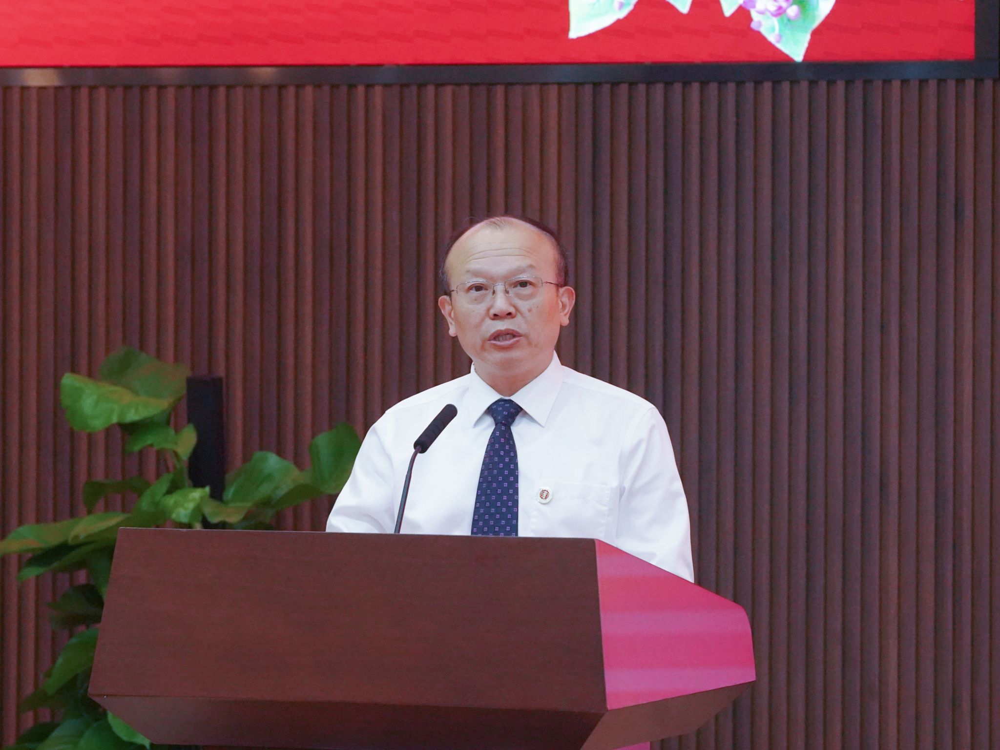 学校校长何建新代表学校向辛勤耕耘在教育一线的全体教师致以诚挚问候和崇高敬意,向长期默默奉献、关心支持学校发展的离退休教师们表示亲切关怀与美好祝愿。他表示,今年的教师节承载着特殊的历史意义。学校招收了第一届博士研究生,并成功获得本科推免资格,这标志着我们的人才培养迈上了新台阶。这一里程碑的突破,离不开每一位教师的坚守与付出。正是大家以“躬耕教坛、强国有我”的使命担当,践行教育家精神,为学校筑牢坚实的学科基础、汇聚强大的育人力量。
