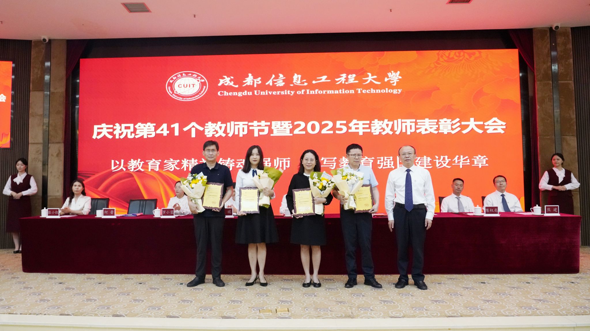 学校对在各个领域取得突出成绩、为学校发展作出卓越贡献的优秀教师予以表彰,学校校长何建新宣读了表彰文件。张葛祥、李勇两位教授遴选为享受国务院特殊津贴专家;大气科学学院院长华维教授获“全国气象教学名师”称号;大气科学学院葛非教授获国家级人才称号;唐婷婷、李勇、陈浩3名教师获省级人才称号;赵长名老师获成都市人才称号。学校启动荣誉体系,教务处、科技处获“管理服务先进集体”称号;自动化学院、人工智能学院获“就业工作先进集体”称号;昌燕等5名教师获“研究生优秀指导教师”称号;郜东瑞等8名教师获“成信科技英才奖”;于尧等25名教师获“管理服务先进个人”称号;侯倩等10名教师获“就业工作先进个人”称号;田媛等10名辅导员获我校“十佳辅导员”称号。白杨、郭俊等10名教师获学校“青年教师教学奖”。此外,还有数10名教师在“第九届全国高等院校英语教师教学基本功大赛”“第十二届电工电子基础课程实验教学案例设计竞赛”等教学竞赛中获国家级、省级奖项。学校还对本年度获得“光荣从教30年”荣誉称号和“光荣退休奉献奖”的退休教师予以表彰。