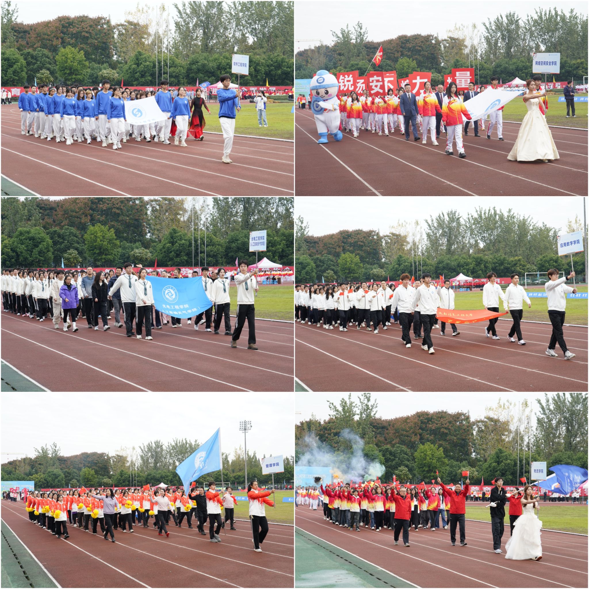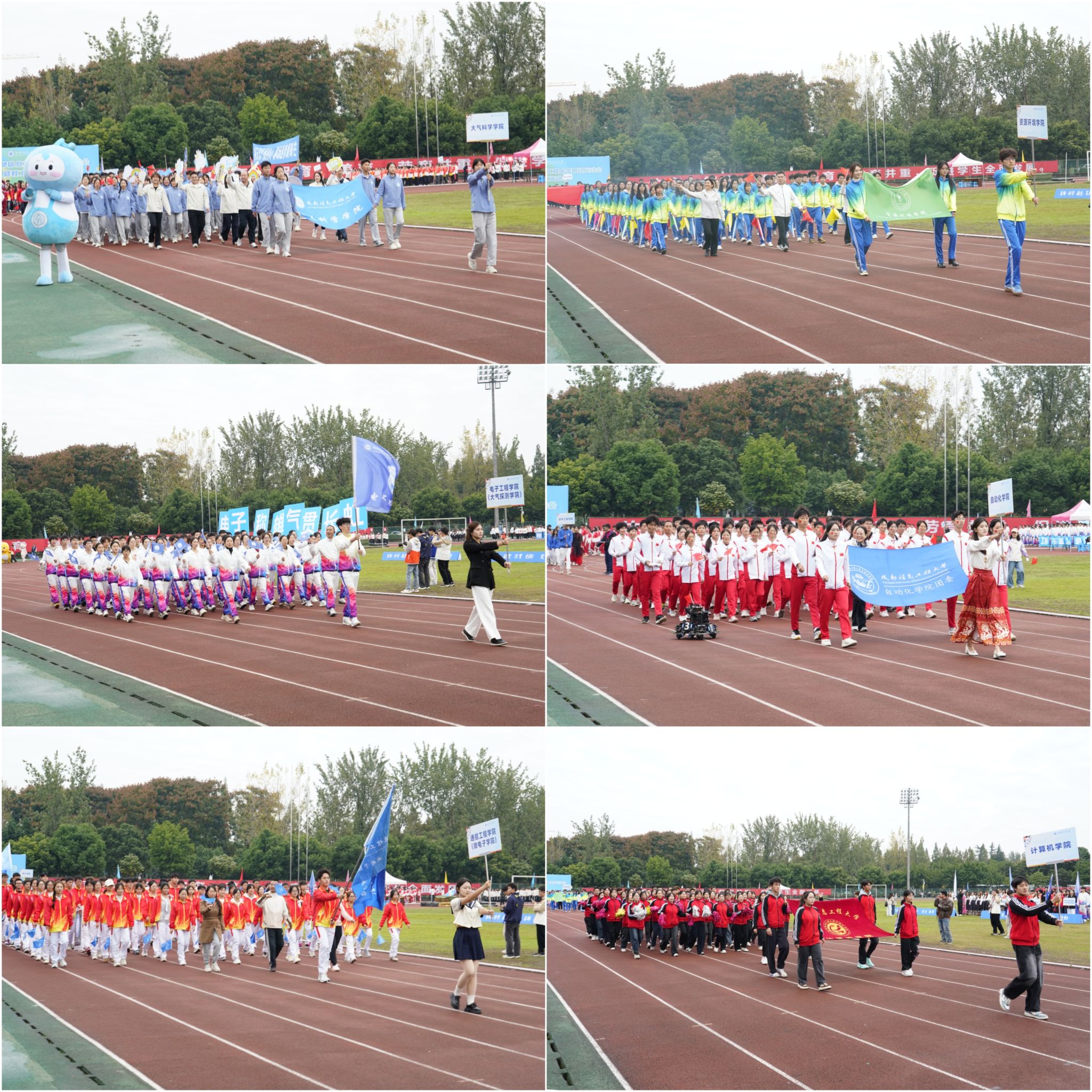 伴随着雄浑激昂的进行曲,18支来自各个学院的运动员和教职工代表队,意气风发、步调一致地走进运动场。