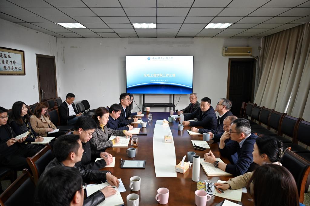 【本网讯】3月11日上午,学校校长余敏明带队到光电工程学院调研指导工作。学校副校长何建新、舒红平、朱明,党委办公室、校长办公室、党委教师工作部(人事处)、发展规划处、教务处、研究生处、科技处等职能部门负责人,光电工程学院党政班子成员、科级干部、专业系主任参加了调研座谈会。