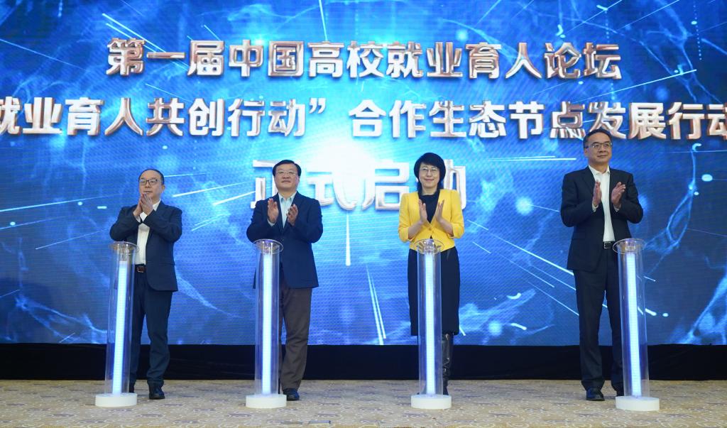 大会举行了第一届中国高校就业育人论坛“就业育人共创行动”合作生态节点发展仪式。四川省委网信办副主任宁方伟、我校校长余敏明、全国普通高校毕业生就业创业指导委员会新就业形态和创业指导专家组副组长孙焱,世纪互联集团董事长陈升共同启动仪式。
