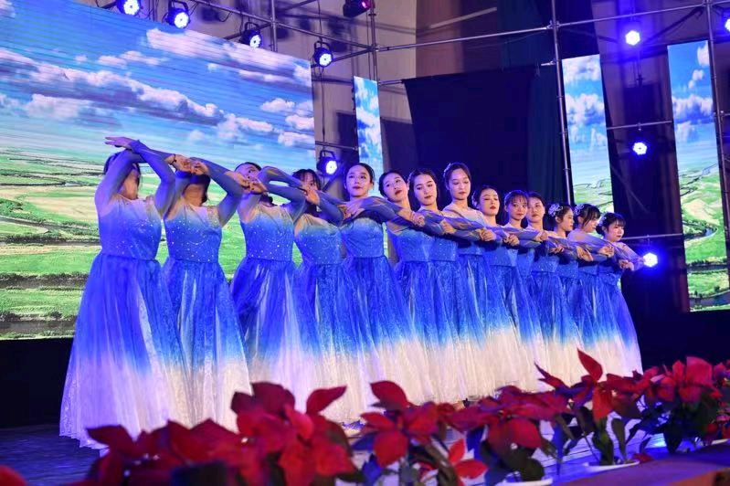 第二篇章《国泰民安,异域处处好风光》中情景诗朗诵《这,是我们的坚持》讲述了在中国共产党的带领下,中国人民实现了从站起来、富起来到强起来的伟大飞跃。维吾尔族、彝族、藏族等同学分别用民族歌舞展现了家园繁荣和谐的景象。