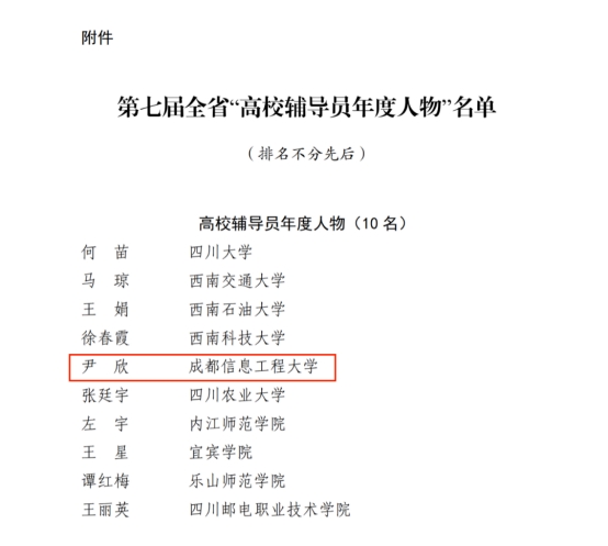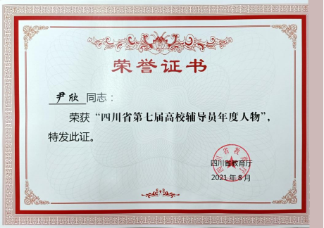 学校辅导员尹欣获得第七届“四川省高校辅导员年度人物”称号
