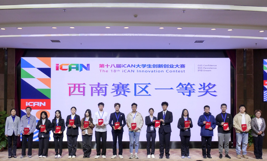 经过现场答辩和专家评议,本次iCAN西南赛区选拔赛最终评选出一等奖队伍41支、二等奖队伍63支。我校学子获得一等奖4项、二等奖4项,电子工程学院余小敏、颜廷昱获优秀指导老师奖。参会领导和嘉宾为获奖选手和教师颁奖。