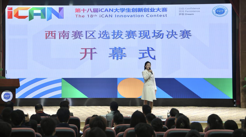 【本网讯】10月26日,第十八届iCAN大学生创新创业大赛(以下简称iCAN大赛)西南赛区选拔赛在学校航空港校区国际会议厅举行。iCAN西南赛区组委会轮值主席陈功,学校创新创业学院、教务处、电子工程学院、通信工程学院主要负责人,电子科技大学、四川大学等高校教师代表,腾讯、华大九天、灿芯等知名企业代表,三百余名带队教师和选手参加开幕式。