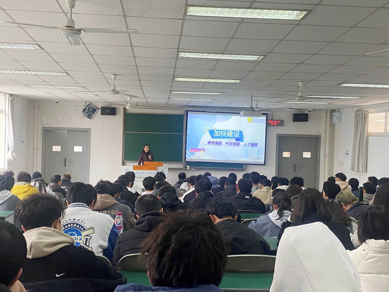 【本网讯】12月8日下午,学校党委宣传部部长张小红在航空港校区2207教室为自动化学院自动化专业2022级本科生讲授主题为“加快建设教育强国、科技强国、人才强国”的《形势与政策》课。