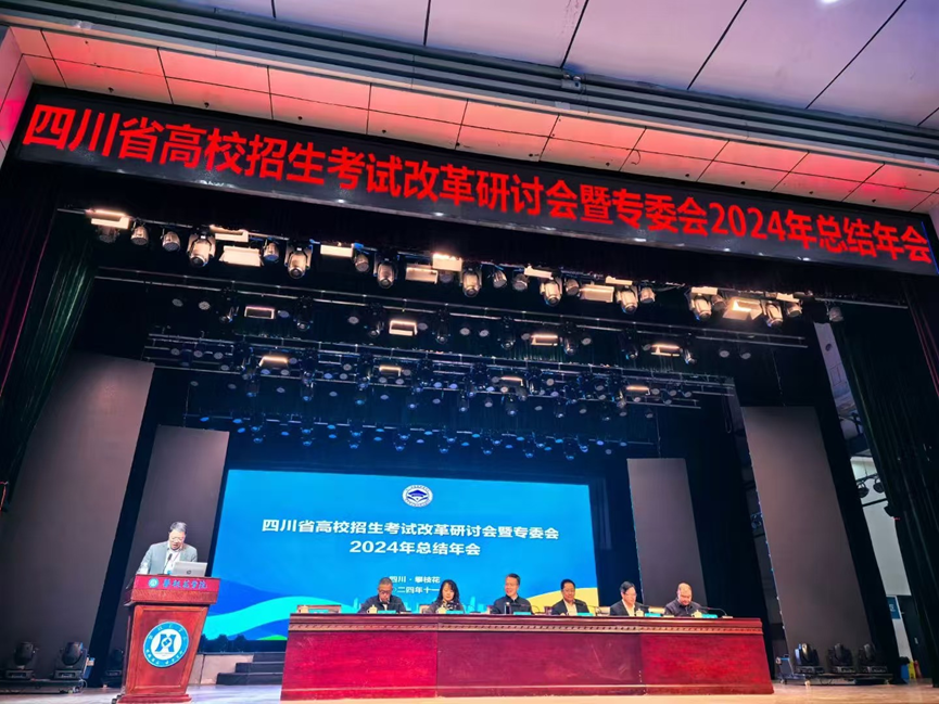 【本网讯】11月底,我校招生就业处处长丁恒康一行参加四川省高校招生考试改革研讨会暨专委会2024年总结年会。会议由四川省教育考试院、四川省高等教育学会指导,四川省高等教育学会招生考试研究专业委员会主办,攀枝花市教育和体育局、攀枝花市教育考试院和攀枝花学院承办。四川省教育考试院副院长张磊,攀枝花市人民政府副市长许军峰,攀枝花学院领导等出席会议。四川省教育考试院、四川省高等教育学会领导及专家、全省各地市州招考机构负责人、50所本科高校招生部门负责人、45所生源高中学校校领导220余人参加研讨会。