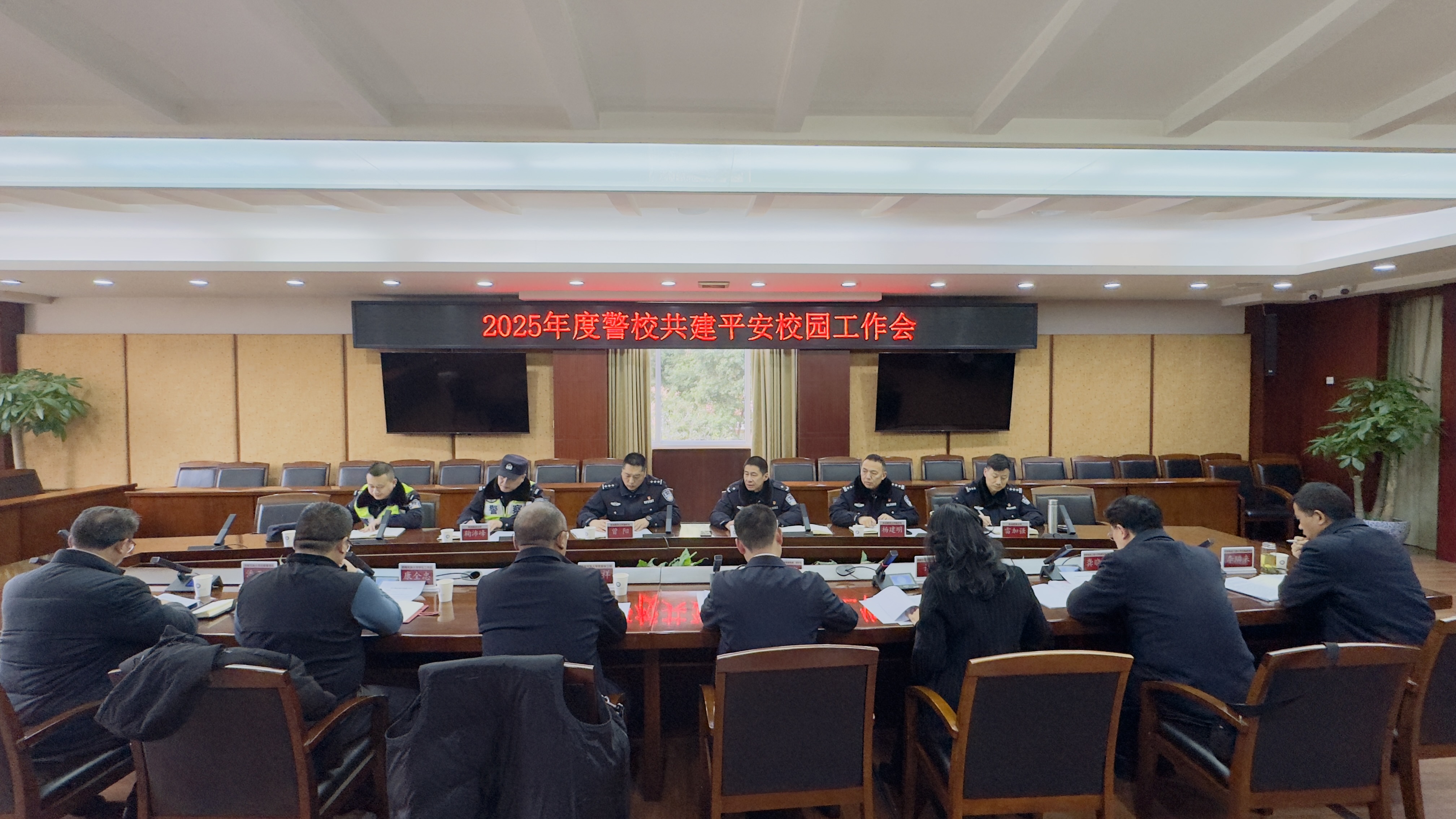 【本网讯】1月8日下午,2025年度警校共建平安校园工作会议在我校航空港校区第七会议室召开。西南民族大学党委保卫部、学生工作处、后勤管理处主要负责人;机场路派出所所长沈卫国,副所长杨建明、曾阳一行;学校副校长陈权亮,党委学生工作部、党委保卫部、后勤基建处负责人参加会议,会议由我校保卫处处长许峻主持。