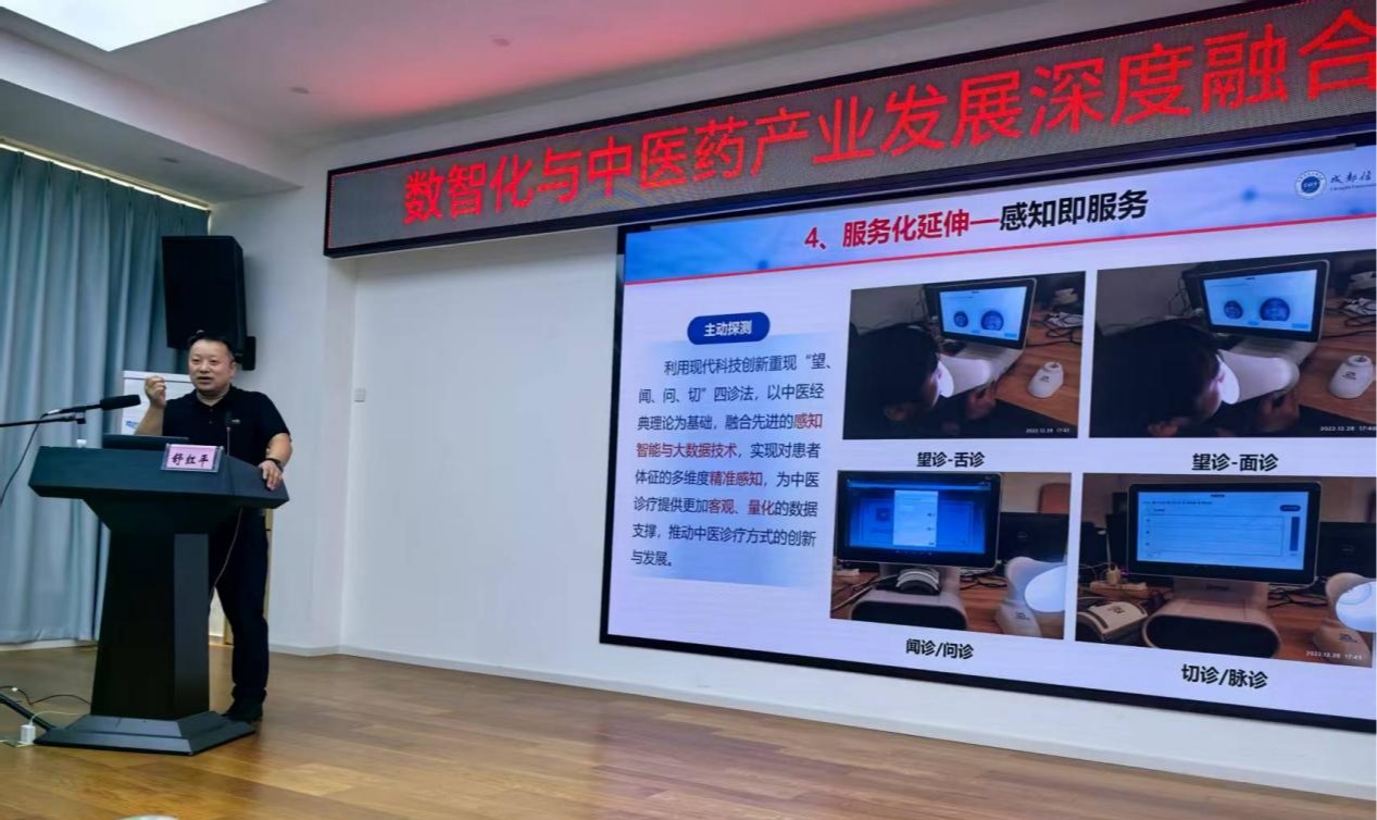 舒红平围绕“数智化与中医药产业发展深度融合探索与思考”主题展开讲解。他从人工智能发展历程切入,强调高质量数据是数智化发展的基础,是中医药领域开展机器学习的核心驱动力。他分析了中医药领域知识抽取、管理和服务方法,重点阐述大语言模型与“知识复兴”相结合在中医药产业中的应用场景;借鉴工业化发展路径与方法,深入浅出地探讨了中医药产业实现工业化发展的路径,解读了中医药工业数智化转型的相关政策支持;结合医学健康气象需求,对如何将多学科交叉融合方法应用在中医智能辅助诊疗决策系统中等内容进行了系统探索。