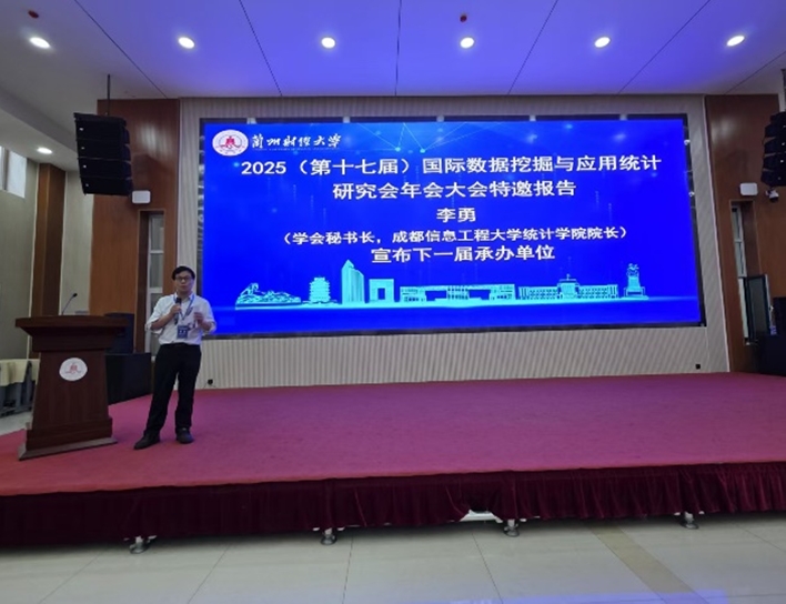 【本网讯】7月18日至21日,由中国商业统计学会数据科学与商业智能分会、厦门大学、台湾辅仁大学、美国耶鲁大学生物统计系、环球官方和兰州财经大学联合主办,兰州财经大学统计与数据科学学院、兰州财经大学甘肃经济发展数量分析研究中心、中国政府统计研究中心、厦门大学数据挖掘研究中心承办的“2025(第十七届)国际数据挖掘与应用统计研究会年会”在兰州财经大学成功举办。
