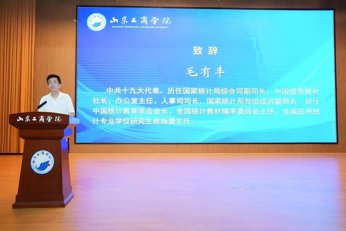 开幕式由山东工商学院统计学院院长贾小爱教授主持。山东工商学院副校长李希亮教授致欢迎辞。