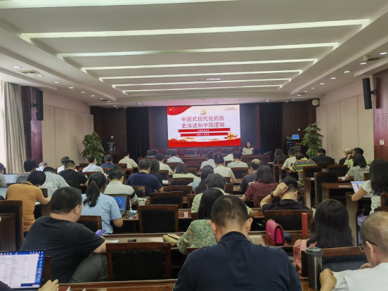 裴书盈以《中国式现代化的历史演进和中国逻辑》为题,对中国式现代化的历史演进和中国逻辑进行解读。她围绕中国的历史状况、中国共产党诞生的历史背景、中国式现代化的历史演进、中国式现代化的具体内涵、中国式现代化的先进意义、中国式现代化融入课程思政的思考等方面,对中国式现代化进行深度阐释,并重点解读了报告中的中国逻辑、融入课程思政的思考等内容。她特别谈到,中国式现代化展现了现代化的另一幅图景,拓展了发展中国家走向现代化的路径选择,为人类对更好社会制度的探索提供了中国方案。她还就将中国式现代化的相关理论融入课程思政的思考与大家作了分享。