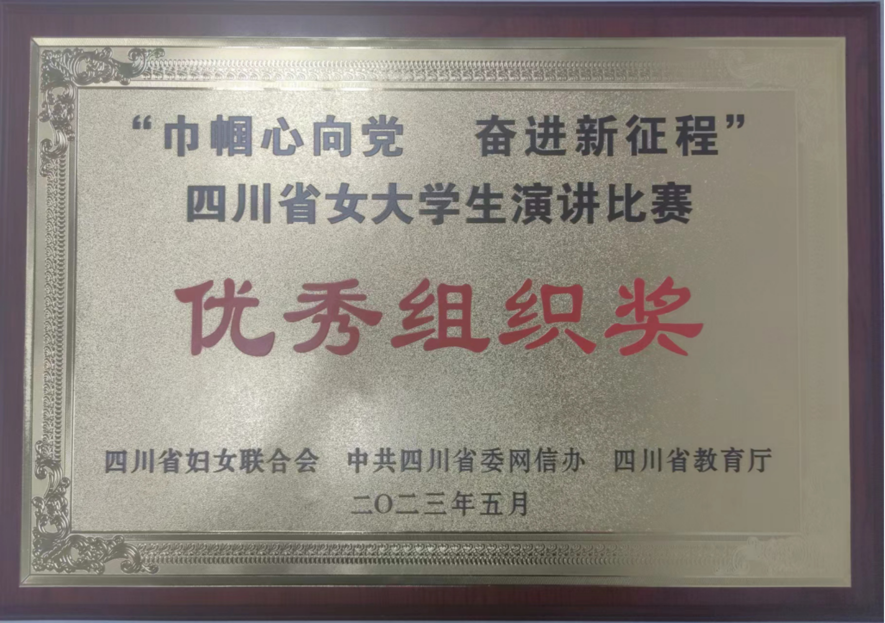 【本网讯】 5月22日,由四川省妇女联合会、中共四川省委网信办、四川省教育厅共同主办的“强国复兴有我——巾帼心向党 奋进新征程”四川省女大学生演讲比赛决赛在成都拉下帷幕。我校学子李妍从121所高校推荐的205名参赛选手中脱颖而出,最终以第六名的成绩荣获比赛二等奖,我校也获得本次活动的优秀组织奖。
